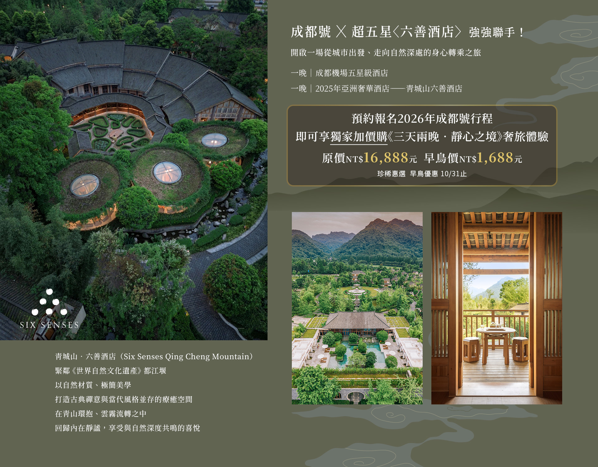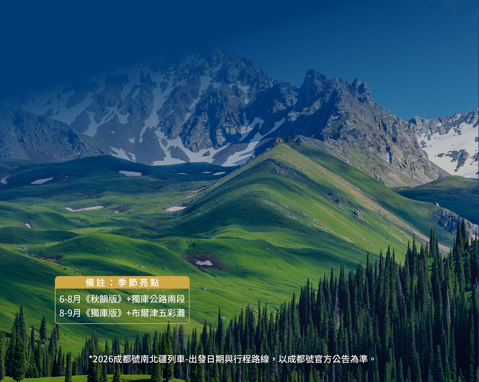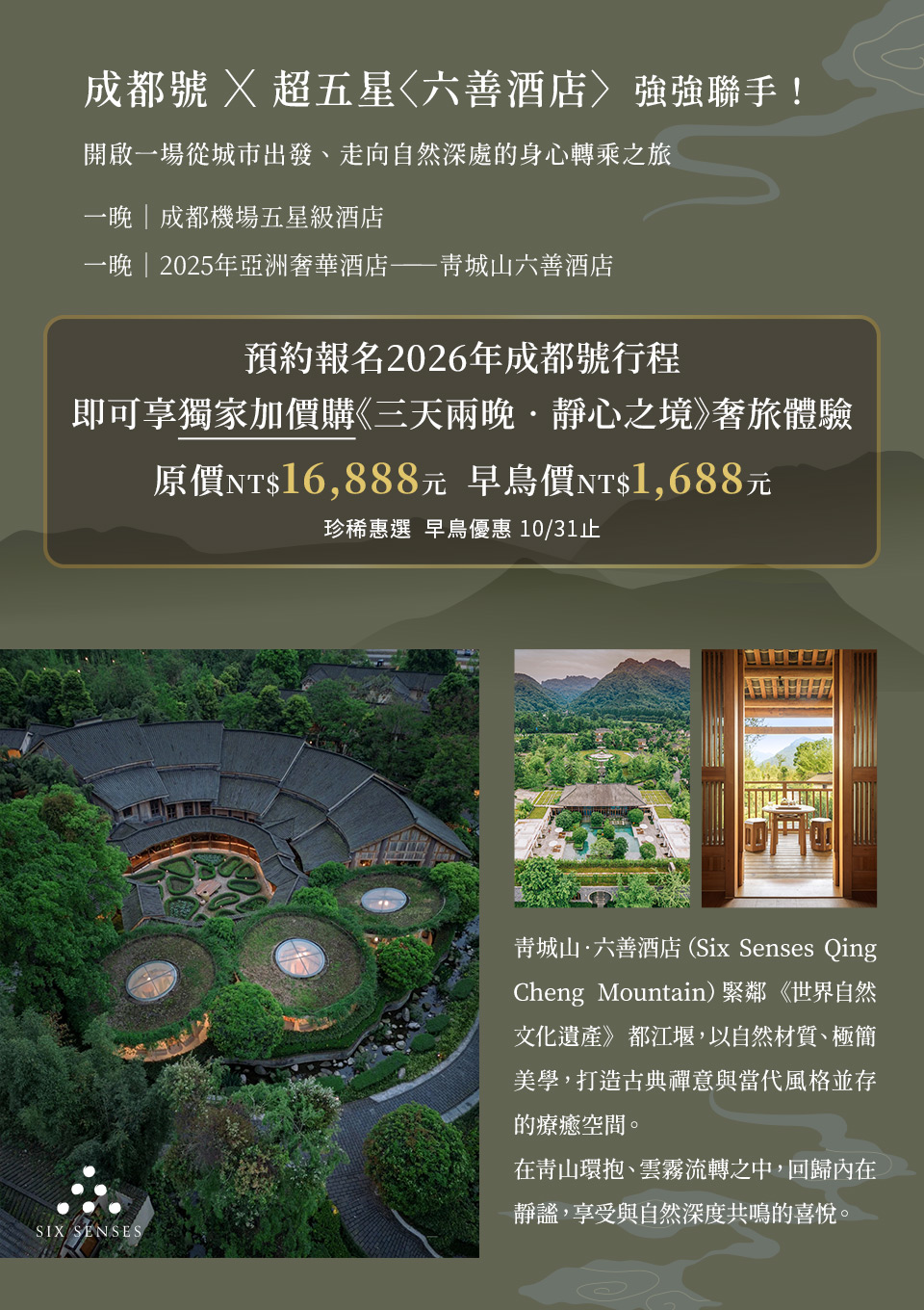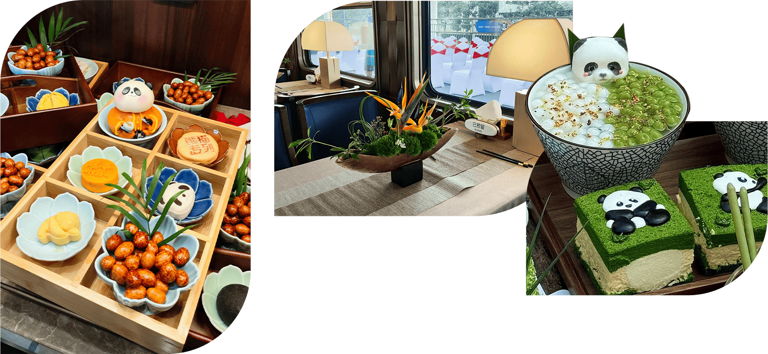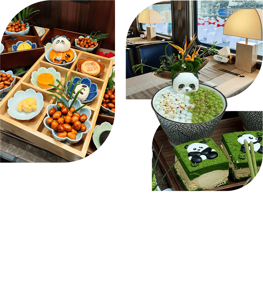 帶著好奇與期待,踏上前進南北疆全境及西南大環線的征途,搭載對奢華火車之旅的想望、與探索未知世界的冒險之心!徜徉在12列軟臥車、2列娛樂廳車廂、2列餐車構築的美好小天地,在餐車的歡樂中,品嘗令人吮指回味的川、疆美食,還有讓人捨不得吃的Q版熊貓造型小點心。