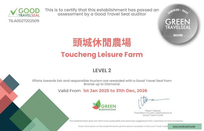 頭城休閒農場,再次以堅實的步伐走向國際,成功通過 Good Travel Seal 認證,獲得 Level 2(銀級)的殊榮。