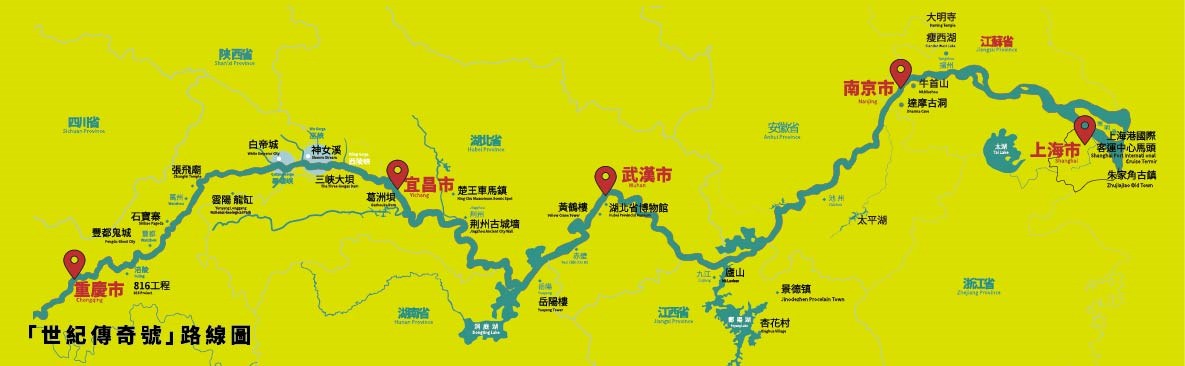 重慶-豐都-奉節-宜昌-荊州-武漢-九江-池州-南京-揚州-上海