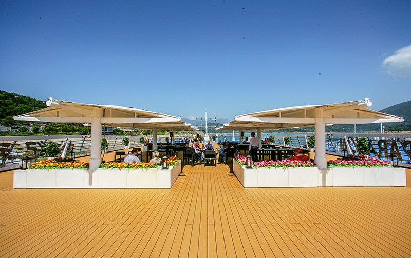 遊輪緩行江上時在這裡享用美食,兩岸隨之移動的風光映入眼簾,這讓旅行的每一餐都充滿了風雅的意趣。