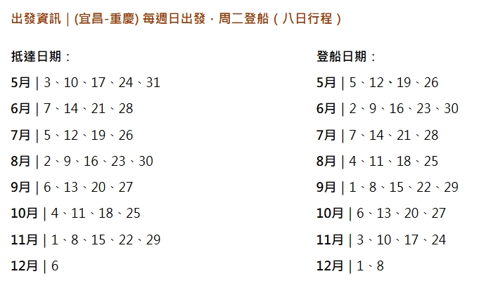 長江三峽段(宜昌-重慶 上水行程)|每周二登船