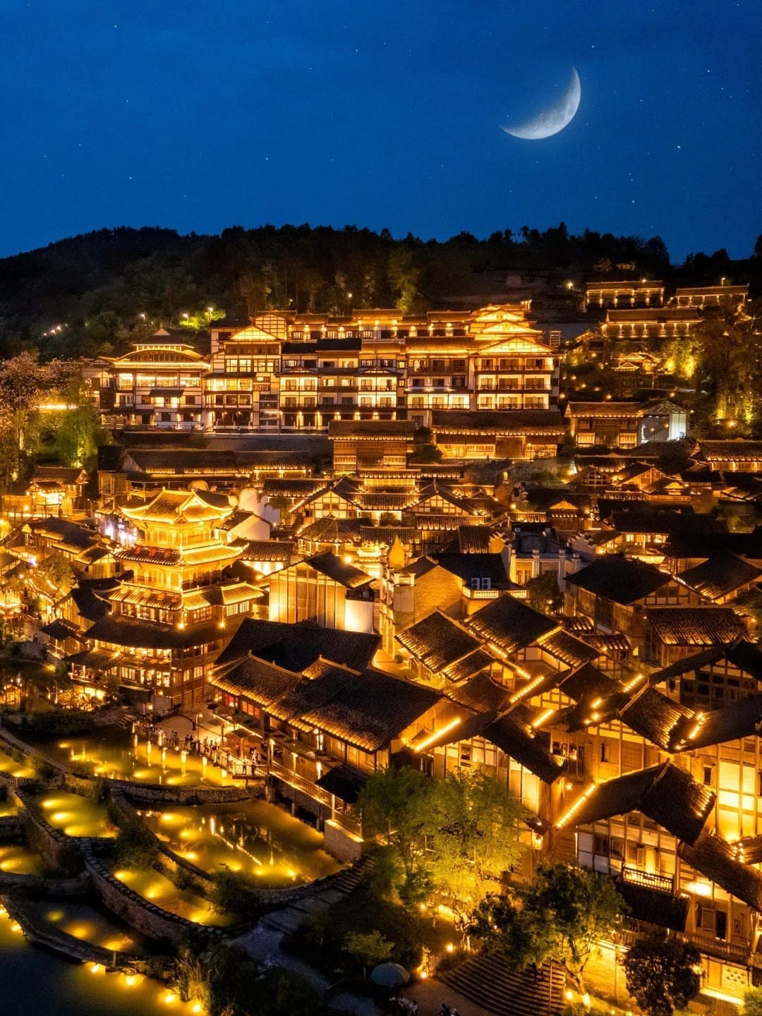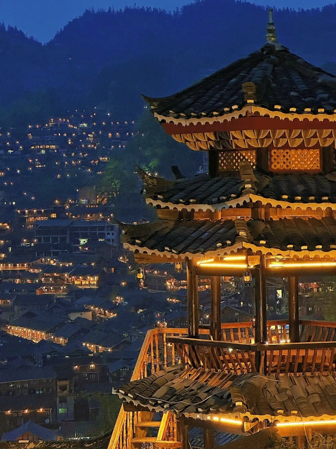 最具代表性的苗族聚落之⼀,這裡以獨特的苗族傳統文化和壯麗的自然風光聞名於世 。千戶苗寨以其千餘棟精美的吊腳樓群而著稱 ,這些建築採用木結構 ,懸空於山間梯田之上 ,展現出苗族獨特的建築風貌和生活方式。寨內保存完好的傳統習俗和節慶活動 ,如傳統婚禮 、苗族舞蹈等 。