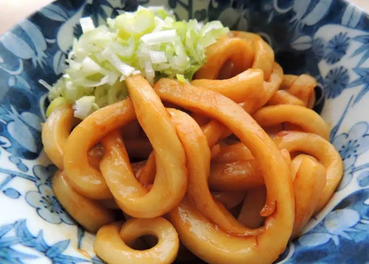 伊勢烏龍麵的特徵是超粗麵條經過長時間水煮,口感非常柔軟Q彈,食用時拌入以老抽醬油為基底製成的濃黑醬汁。醬汁看似重鹹,但其實不然,是偏甜溫潤的味道。加上蔥花點綴,吃起來清爽順口。伊勢烏龍麵因麵條軟綿容易消化,當地人甚至會拿來當作嬰兒的副食品使用,所以非常適合因旅行而疲憊不堪的人。若再加個生雞蛋或炸天婦羅,便是一道份量十足的美食。