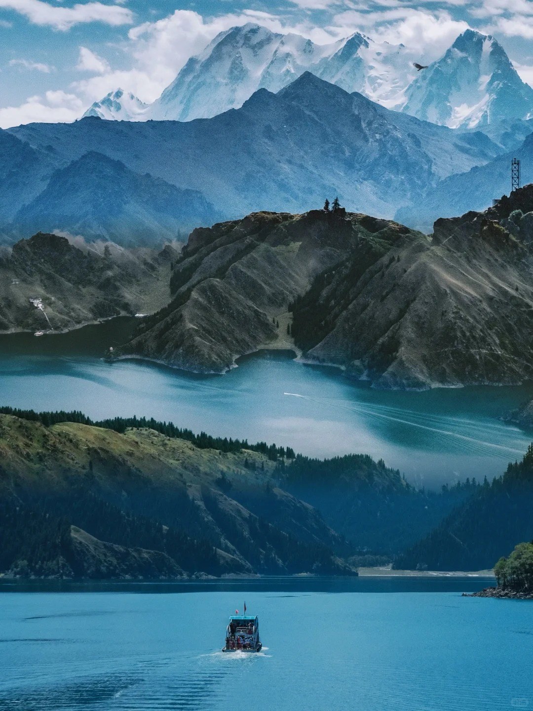 環湖漫步,微風拂面,或乘小舟靜賞湖光山色,每一刻都彷彿時間放慢,感受自然的靜謐與壯麗。天池不僅是自然景觀的絕美縮影,更承載著絲路文化的歷史印記,是心靈與自然對話的理想所在。