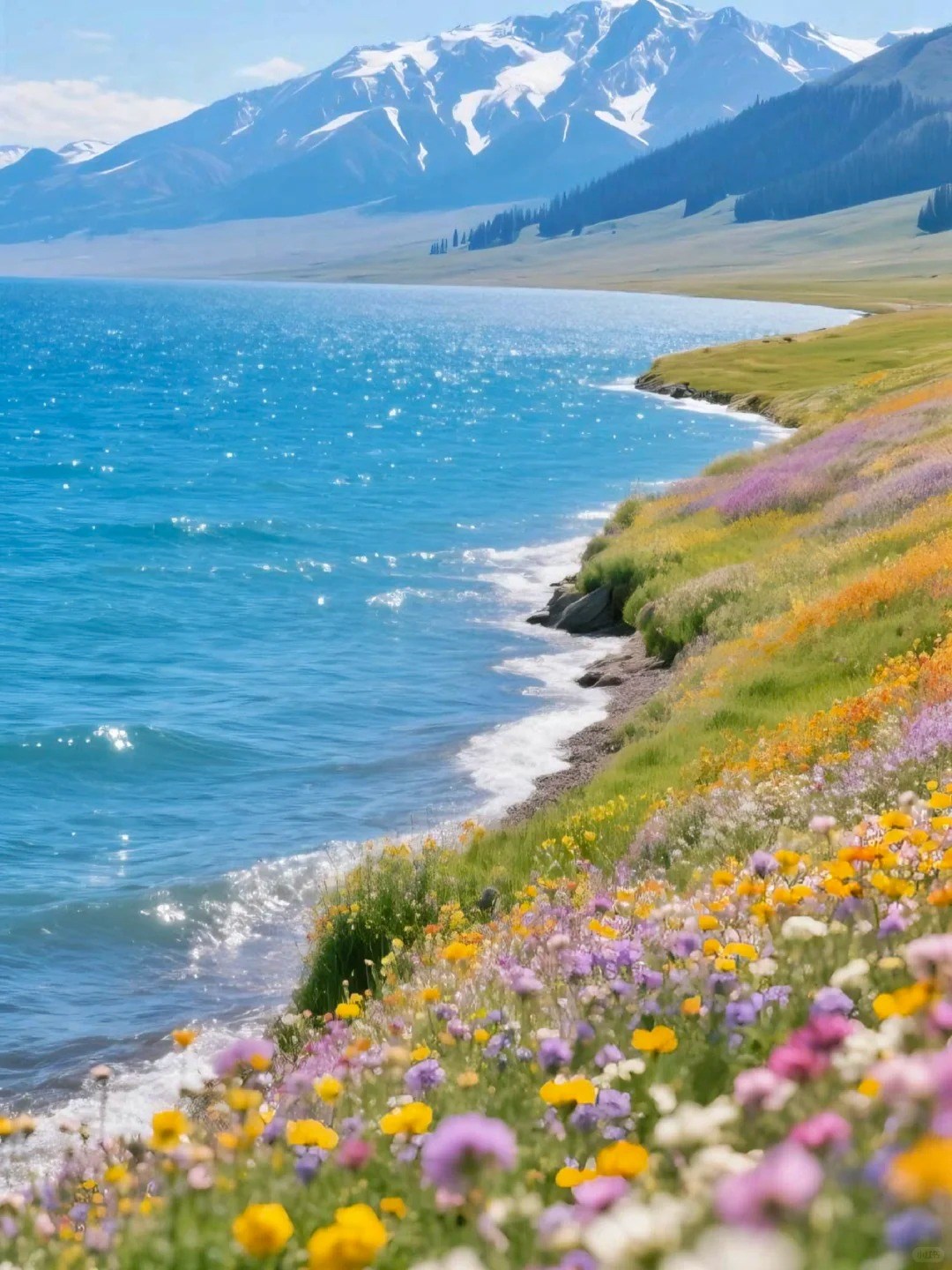 湖泊坐落於高山脊梁之上,湖水澄澈如寶石,周邊群山環抱,風光旖旎。沿湖漫遊,可聆聽流傳千年的動人傳說,並感受絲路文化在此沉澱的深厚底蘊。
