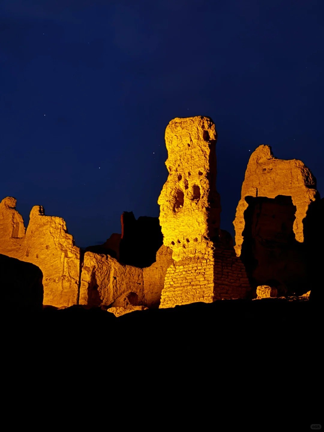 夜幕下,古城的輪廓在燈光的映襯下愈發顯得滄桑而神秘。