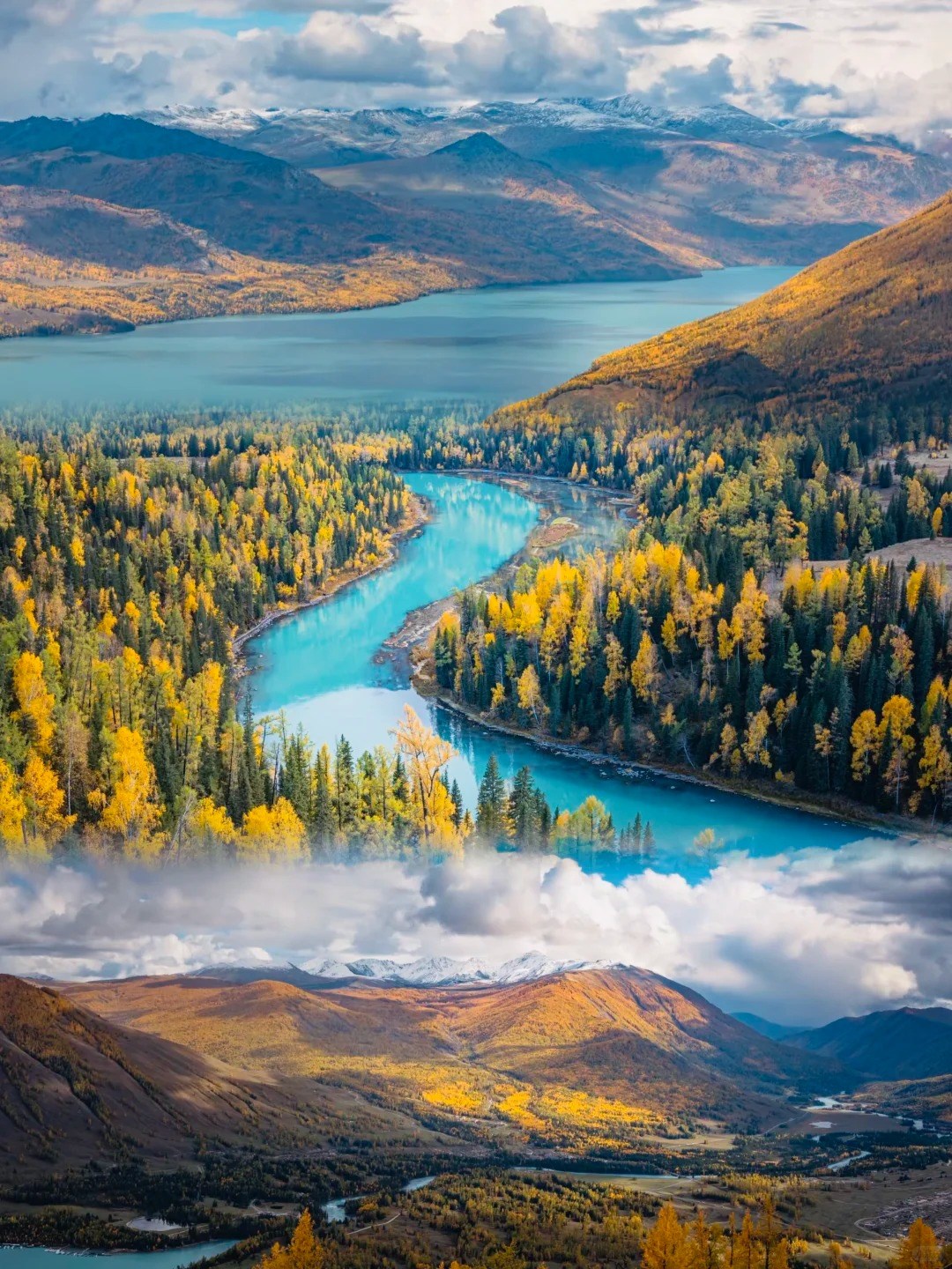 喀納斯被譽為「亞洲唯一的瑞士風光」,湖泊、森林與雪山交織,是旅人心中名副其實的「人類最後一片淨土」。