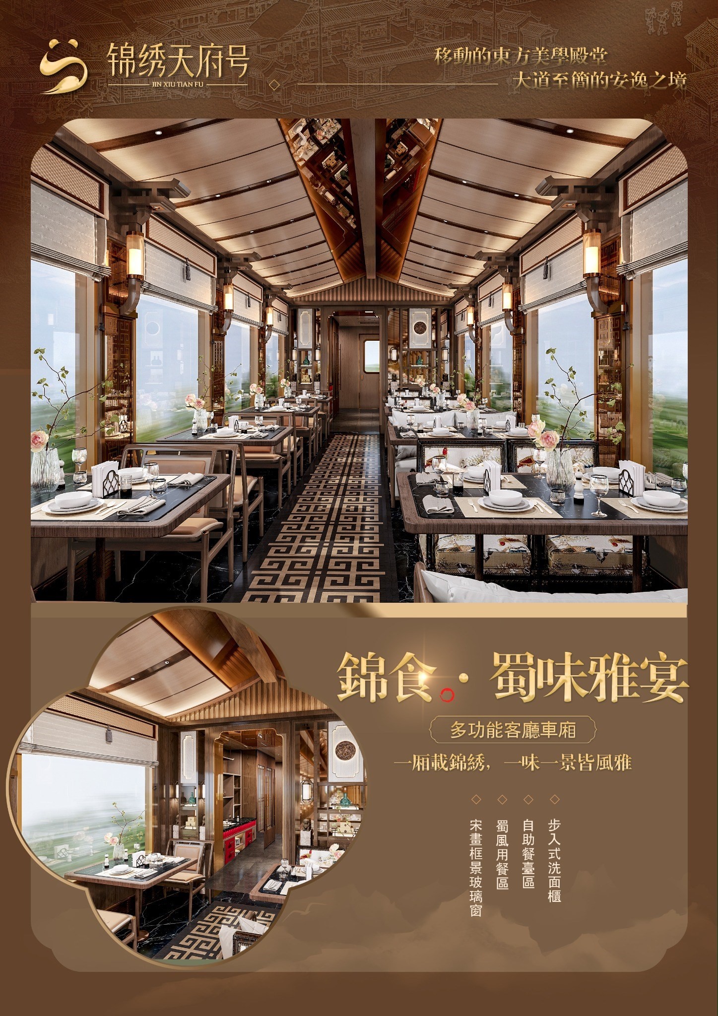 今日將全天於錦繡天府號上,沉浸體驗行走於山河之間的東方美學列車。