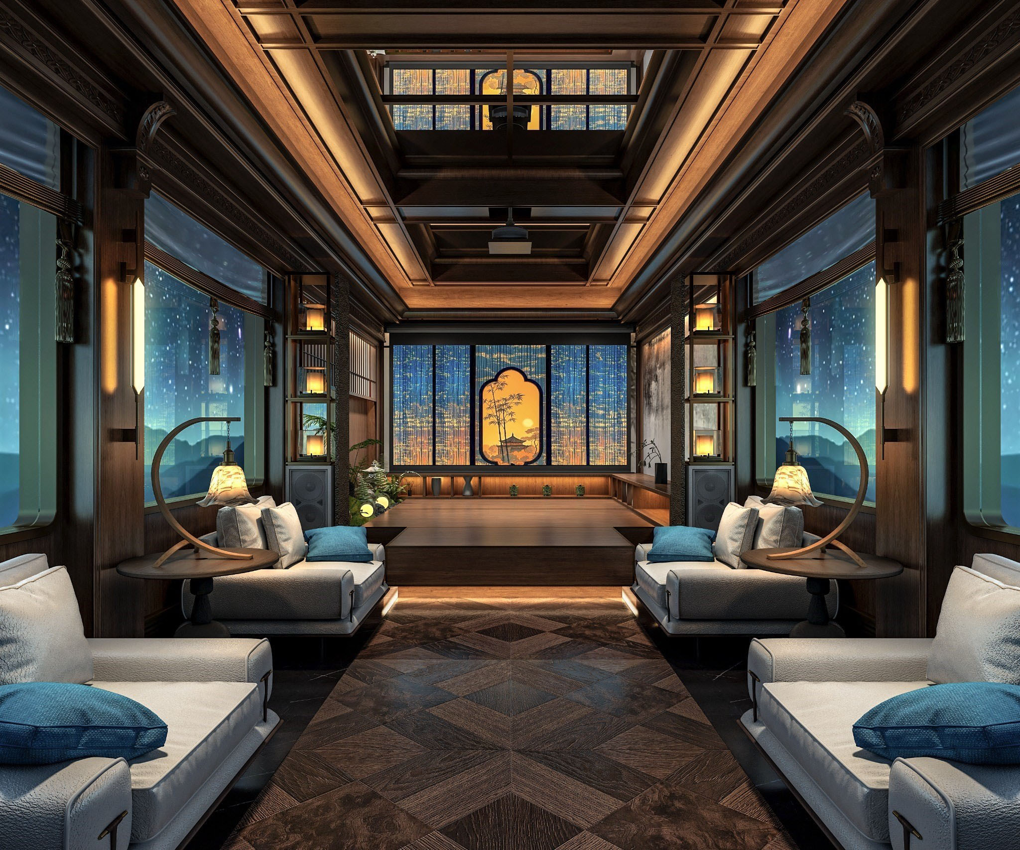 錦繡天府號以現代設計詮釋深植於中華文化的空間觀:圓者天成,方者地載。