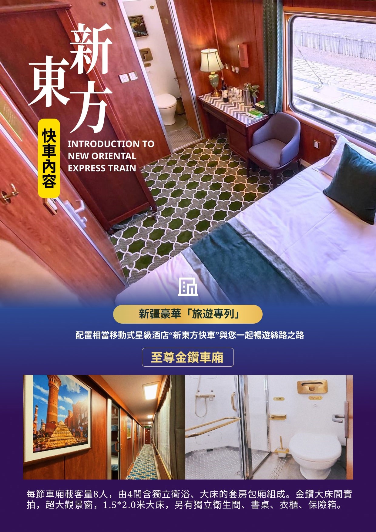 「新東方快車」有8節金鑽車廂和3節銀鑽車廂。