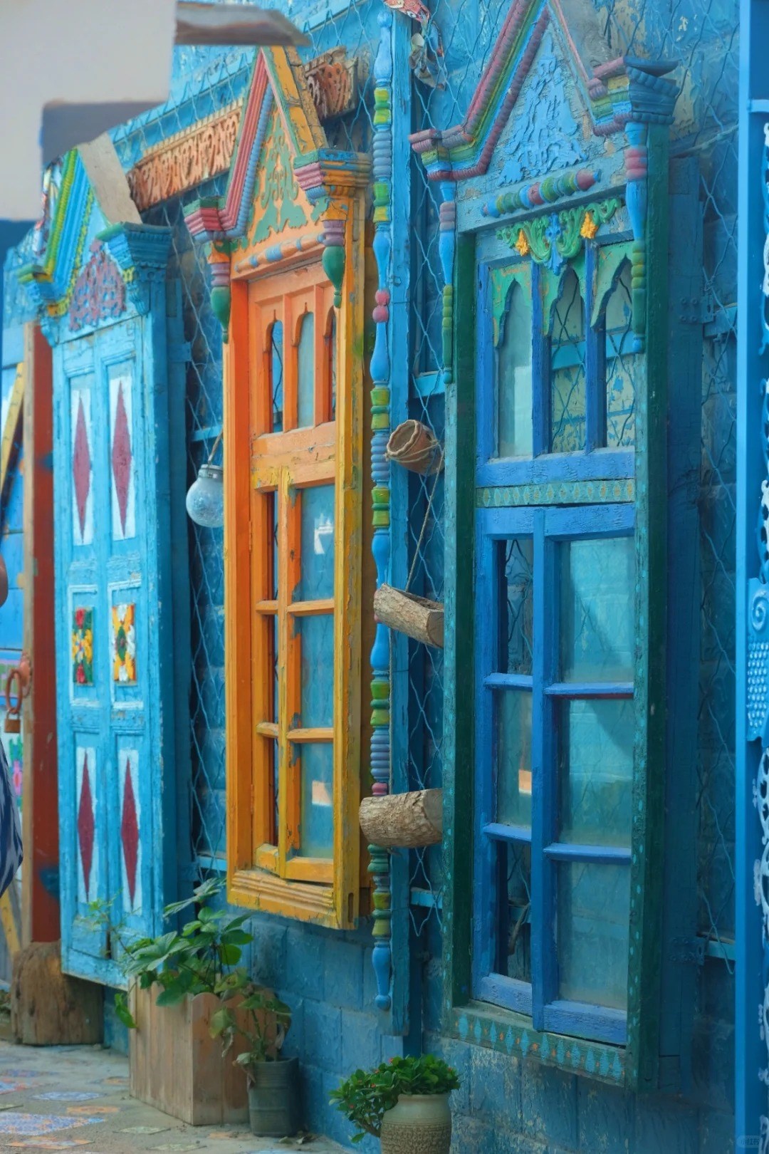 這裡氛圍靜謐,充滿濃厚的民族風情與深厚的文化底蘊。藍色的小屋與湛藍的天空相互呼應,點綴著白色的花朵和黃色的磚瓦,畫面恬靜又迷人。在這裡可以放慢腳步,享受悠閒時光;同時還能近距離體驗維吾爾族婚禮的熱鬧氛圍,感受當地最真摯的熱情。