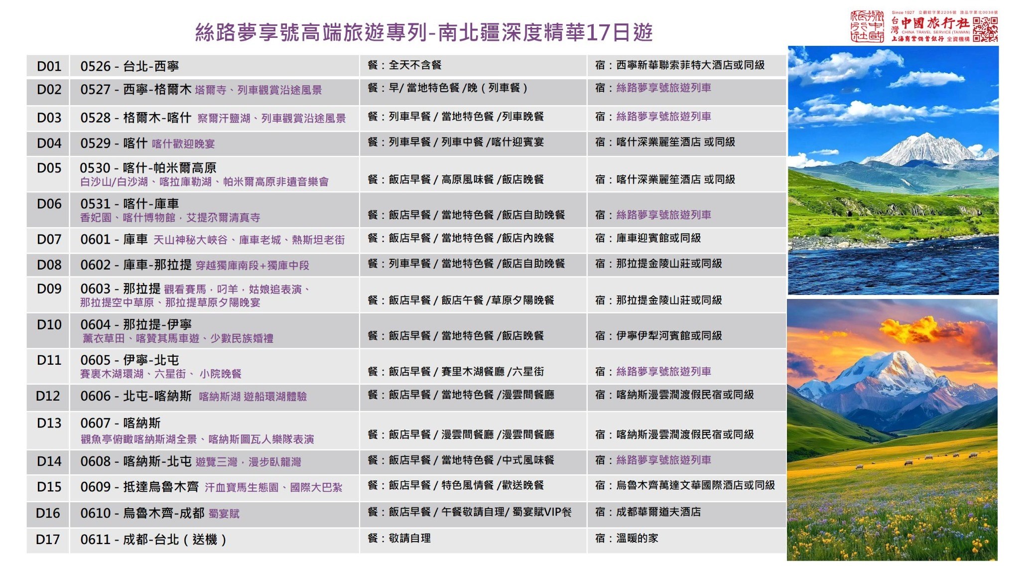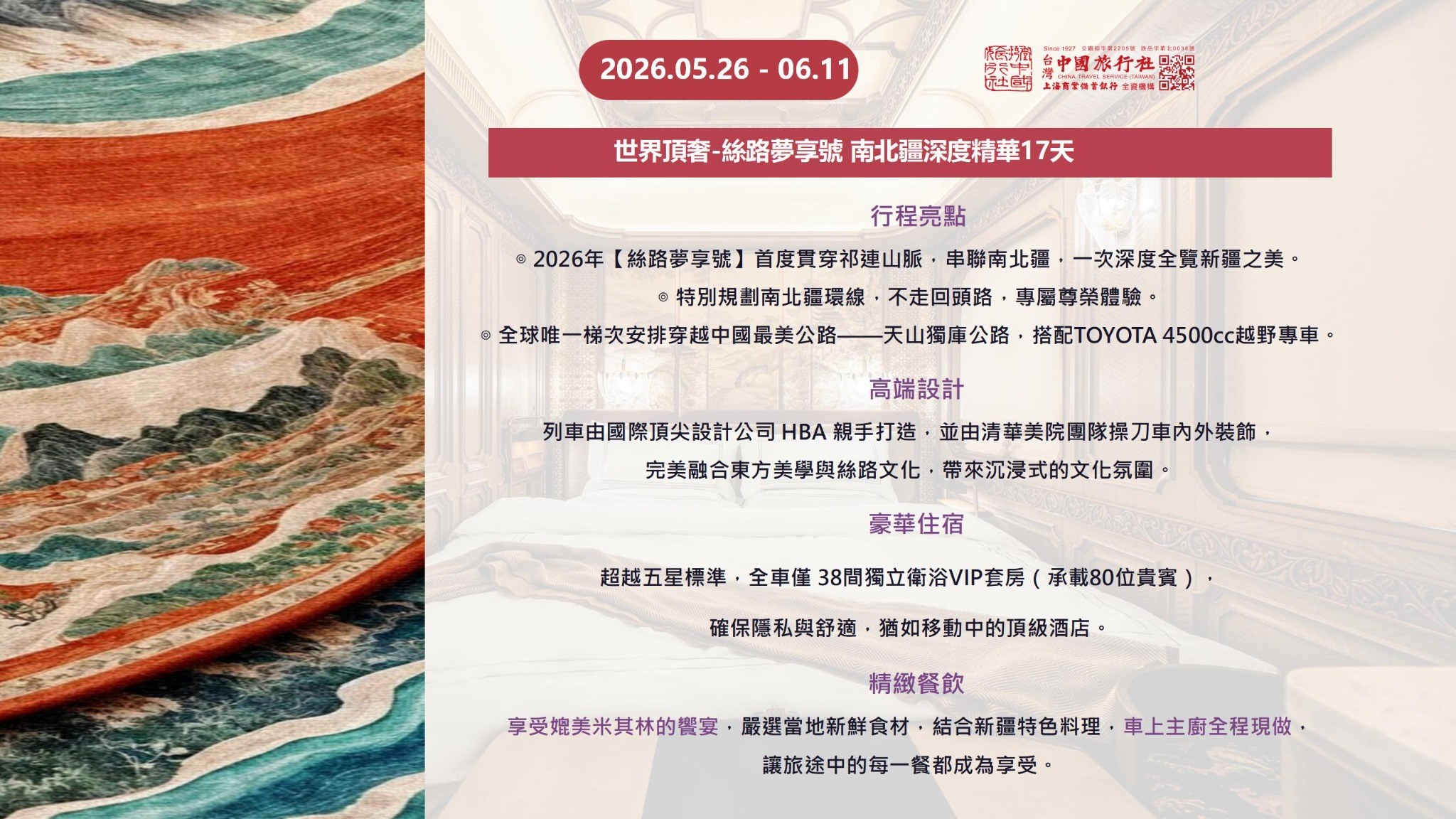2026 高端火車票劵-絲路夢享號 · 0526 絕色絲路17日