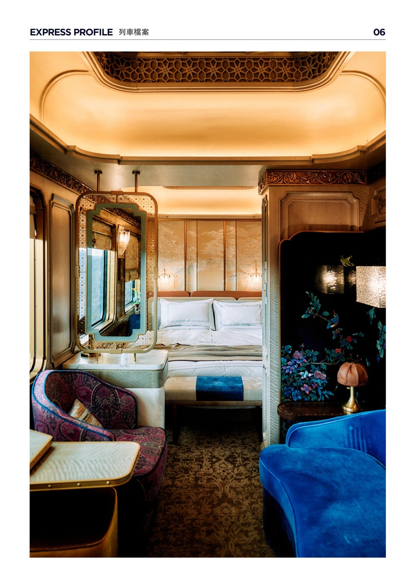 豪華住宿:列車住宿標準超越五星酒店,提供全獨立衛浴臥車,總計 38 間 VIP 客房,確保每位乘客的舒適與隱私。