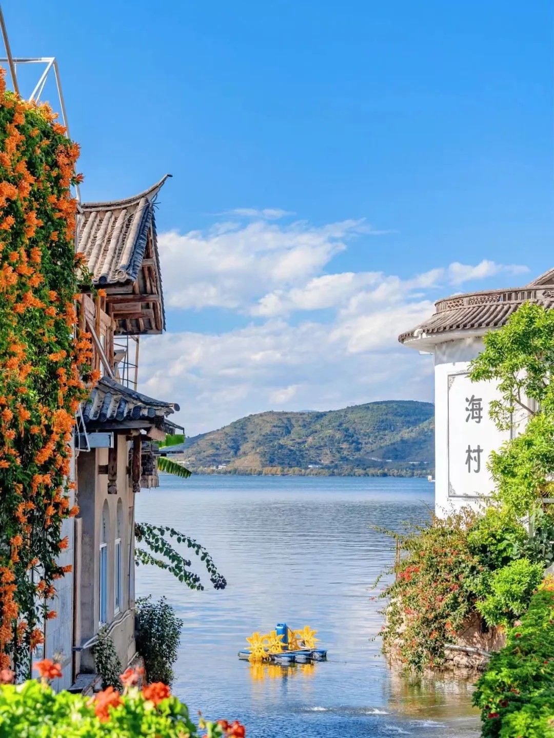 洱海的晨曦,宛如一場盛大開幕。湖面被晨光鍍上金輝,波光灩。沿著湖岸騎行,風攜著湖水與繁花氣息,輕吻臉頰,吹散所有紛擾。